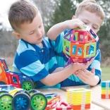 Le jeu de construction magnétique GeoSmart Deluxe Ensemble à roulettes offre des possibilités infinies de créations. Les enfants peuvent réaliser différentes constructions originales, des animaux ou des véhicules. Le jeu aide à développer les notions de base de la géométrie, des couleurs et des formes et permet aux enfants de comprendre les concepts de figures 2D et 3D.