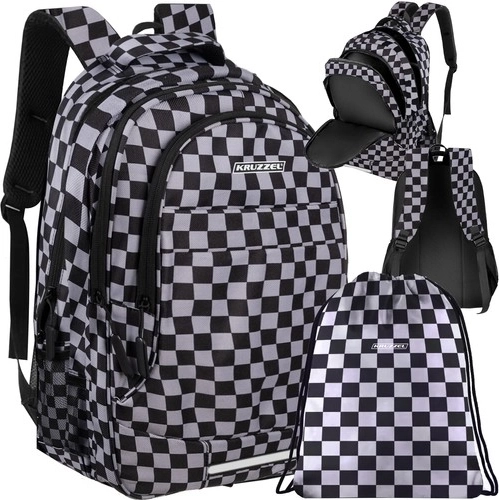 Vous cherchez un sac à dos scolaire ou urbain polyvalent, résistant, confortable et qui attire le regard ? Ce sac à dos damier noir‑blanc KRUZZEL combine Oxford 600D robuste avec un panneau dorsal respirant et un rembourrage EPE pour plus de confort et une meilleure protection du contenu. Les deux poches latérales en mesh accueillent une bouteille d’eau, tandis que la poche frontale et la bande réfléchissante augmentent la praticité et la sécurité à la tombée de la nuit.