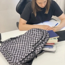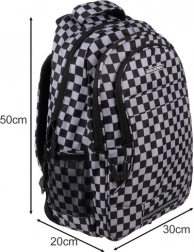 Sac à dos stylé et résistant à motif damier de la marque KRUZZEL, offrant un volume spacieux de 30 L, des bretelles ergonomiques et rembourrées et une organisation astucieuse pour l’école, le travail et les loisirs. Fabriqué en OXFORD 600D de haute qualité avec doublure, il dispose de multiples poches zippées, de poches latérales en maille pour bouteille et d’éléments réfléchissants pour la sécurité. Le pack comprend également un sac à cordon assorti pour les chaussures ou le sport.
