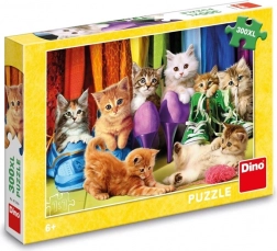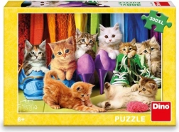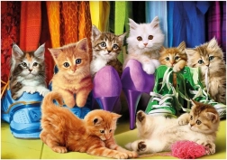 Une image joyeuse de chatons parmi des chaussures et des pelotes motive les enfants à assembler le puzzle et décore la chambre une fois terminé.