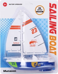 Le bateau est disponible en deux couleurs attrayantes - bleu et blanc. Son fonctionnement nécessite deux piles AA, qui ne sont pas incluses, et il est équipé d'un interrupteur ON/OFF situé au-dessus du moteur pour un contrôle facile. Il offre une expérience de course réaliste qui ravira les enfants et les adultes.