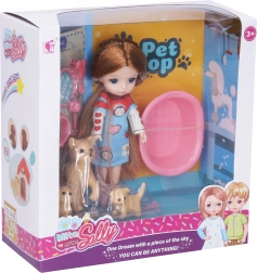 Adorable poupée avec des chiens est idéale pour chaque enfant aimant les animaux. La taille de la poupée de 12,5 cm est parfaite pour les petites mains.