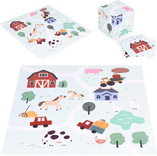 Le tapis en mousse pour enfants avec motif de ferme allie sécurité et amusement. Il offre 21 pièces de puzzle, des dimensions de 90,5 × 90,5 cm et une épaisseur de 1 cm pour jouer confortablement et faire ses premiers pas. Fabriqué en mousse EVA certifiée, il est antidérapant, facile à nettoyer et protège du froid du sol – idéal pour le jeu créatif et l’apprentissage des enfants dès 3 ans.