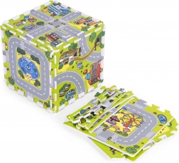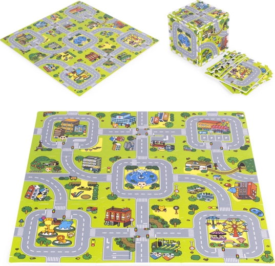 Une fois assemblé, le tapis propose une petite ville spacieuse avec routes et parcs. Idéal pour faire rouler des petites voitures, créer des scènes et apprendre les règles de la circulation en jouant.