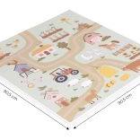 La mousse EVA certifiée est sûre pour les enfants, possède une texture antidérapante et amortit efficacement les éventuelles chutes. Les éléments illustrés de la ferme (tracteurs, animaux, chemins) invitent à l’exploration et encouragent l’apprentissage par le jeu.