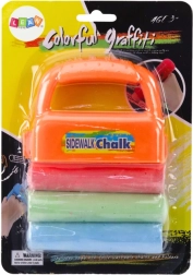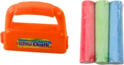 Ensemble ludique de craies épaisses pour trottoir avec porte-craies orange permettant aux enfants de tracer des lignes multicolores en un seul geste. Les craies sont faciles à laver à l’eau et le porte-craies est facile à prendre en main – idéal pour des activités créatives en plein air dès 3 ans.