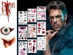 Grâce à une large gamme de motifs, complétez facilement votre maquillage pour Halloween, les soirées à thème ou les séances photo. Chaque feuille propose un assortiment de designs effrayants, des éclaboussures de sang aux toiles d’araignée jusqu’aux cicatrices profondes – pour un effet ultra réaliste.