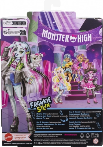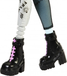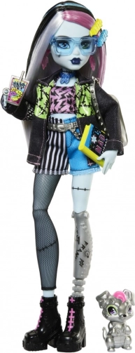 Découvrez l’iconique élève de MONSTER HIGH – Frankie Stein. Cette poupée se distingue par un mélange percutant de styles punk et techno : veste en jean, short, boucles d’oreilles éclairs voyantes et bottines noires à laçage rose. Grâce aux articulations pour la mise en pose, créez facilement des scènes et histoires stylées.