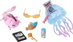 Le coffret comprend la piranha Neptuna et un riche ensemble d’accessoires thématiques : sac à dos transparent méduse, lunettes de soleil, carnet, crayon avec petit poisson, « glace », « oursons gélifiés » et « boisson pétillante ». Ces accessoires stimulent l’imagination et développent le jeu narratif.
