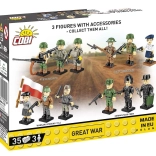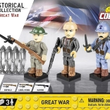 Coffret de construction Grande Guerre 3 figurines 35 pièces est idéal pour les passionnés d’histoire et de modélisme. Cet ensemble comprend des figurines de soldats de France, du Royaume‑Uni et d’Allemagne, chacune équipée d’un armement unique et d’une tenue typique de la période de la Grande Guerre. Le soldat en uniforme bleu représente un Français avec un fusil Lebel Mle 1886 et une baïonnette, le soldat britannique est équipé d’un fusil bicolore Lee‑Enfield avec baïonnette, et le soldat allemand d’un fusil Mauser et du casque typique pickelhaube.