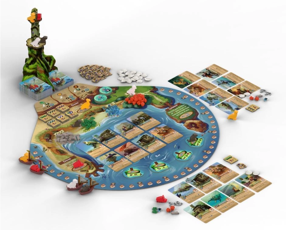 Everdell: Rivage Lointain insuffle un vent de fraîcheur à l’univers apprécié – mettez le cap sur le phare, explorez les tuiles de carte et, grâce à de nouvelles mécaniques, reliez le développement de votre ville à l’expédition maritime. Chaque décision compte: quand envoyer vos ouvriers, quelles cartes jouer et où diriger le navire pour obtenir des trésors et des points de victoire.
