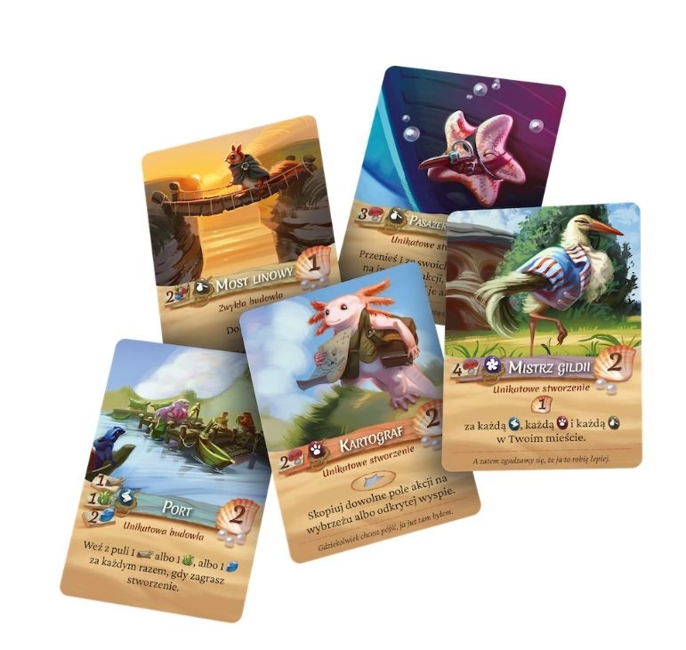 Quatre nouveaux types de personnages animaux élargissent les possibilités stratégiques et peuvent aussi être utilisés avec le jeu de base Everdell. Grâce aux îles modulaires et aux actions variables, chaque partie est différente – de la traversée familiale rapide au duel stratégique palpitant.