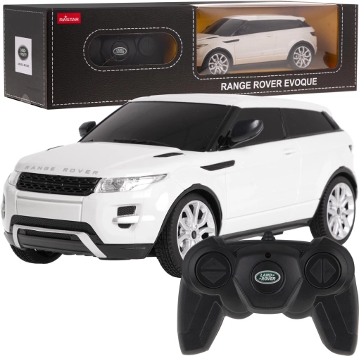 Modèle RC stylé Range Rover Evoque 1:24 de la marque RASTAR séduit par son réalisme, sa direction précise en 2,4 GHz et sa construction de qualité en plastique ABS. Il offre une conduite dans toutes les directions, des roues en caoutchouc, une suspension indépendante et un intérieur détaillé.
