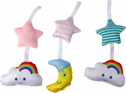 Le mobile rose au motif du ciel ravira chaque nouveau-né. Grâce à sa pince pratique, vous le fixez facilement au bord du berceau, à l’arceau de la poussette ou aux sangles du porte-bébé. Les couleurs douces et les textures moelleuses des peluches attirent l’attention et aident à apaiser l’enfant.