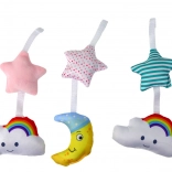- Peluches – lune et 2 nuages avec étoiles pour une stimulation visuelle et tactile.