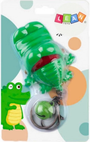 Pendentif vert avec crocodile mordeur et grelot. Jeu amusant, format compact, idéal pour clés ou sac à dos. Certifications CE, EN71. Pour enfants 3+.