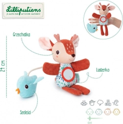 Idéale pour la lecture partagée, les histoires et le rituel du coucher. Le miroir intégré, le grelot et l’oiseau bruissant stimulent naturellement la vue, l’ouïe et le toucher. Une excellente idée de cadeau pour les bébés dès 6 mois.
