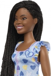 Cette poupée de mode BARBIE inspire les enfants à inventer leurs propres histoires. Elle porte une robe bleue marquante décorée de cœurs colorés, complétée par des lunettes et des chaussures roses. Ses longues tresses et son expression joyeuse en font une amie idéale pour le jeu quotidien et le développement de l’imagination.