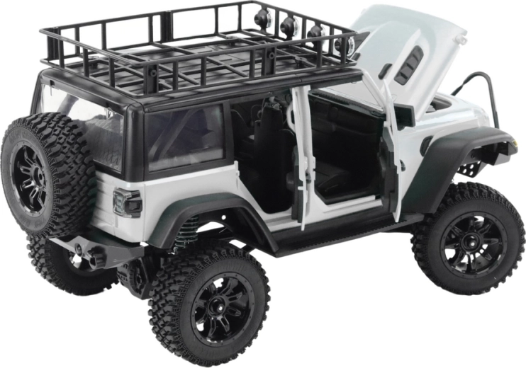 Un modèle conçu pour un plaisir durable : grandes roues en caoutchouc pour une traction optimale, amortisseurs métalliques pour une conduite fluide et éclairage LED pour un look réaliste même à la tombée de la nuit. Alimentation par batterie Li-ion 7,4 V 1200 mAh (incluse) avec chargeur, la télécommande nécessite 2× AA (non incluses).