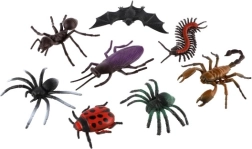 L’ensemble comprend des araignées, un mille-pattes, une coccinelle, un scorpion, une fourmi, un grillon, un cafard et une chauve-souris. Le sachet facilite le rangement et le transport.