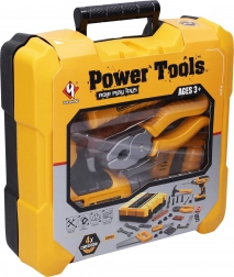 - Mallette, perceuse avec embouts de rechange, marteau, pince multiprise, scie, tournevis, 2 clés, règle, pièces en bois, vis, écrous et autres