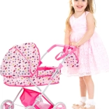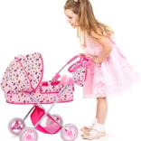 La capote réglable protège la poupée, tandis que le panier inférieur accueille accessoires, biberon et jouets favoris.