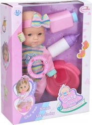 Adorable bébé de 25 cm qui, après avoir bu, fait vraiment pipi et ravira les enfants par ses fonctions réalistes. Inclus : biberon, poudre et petit pot. Le divertissement est assuré par des effets sonores activés par un bouton sur le ventre. Le jouet favorise le développement de l’imagination, des compétences de soin et offre un jeu de rôle réaliste. Piles 3× AG13 incluses.<