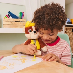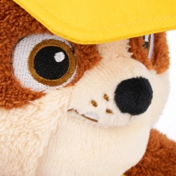 Ce Rubble de 33 cm est en uniforme de construction jaune et casque, avec l'insigne caractéristique de la Pat' Patrouille et en peluche marron, idéal pour jouer en déplacement.