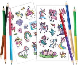 Le livre de coloriage de voyage Licorne offre divertissement et créativité pendant les trajets grâce à 96 pages d’activités, 2 planches d’autocollants et 6 crayons double face. Idéal pour les petits artistes en déplacement !