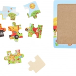 Découvrez un adorable puzzle en bois sur le thème de la récolte, idéal pour les tout-petits. Les pièces sont placées sur une plaque de base solide avec un bord fraisé pour un assemblage facile. Favorise la motricité fine, développe l’imagination et apporte aux enfants la joie de leurs premières réussites.