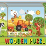 Le puzzle en bois Récolte avec 9 pièces est un excellent choix pour les premières tentatives d’assemblage. Grâce à la plaque de base en bois de qualité et aux pièces robustes, les enfants les manipulent facilement et chaque réussite renforce leur confiance en eux. Le bord fraisé de la plaque de base aide à guider les pièces à la bonne place.