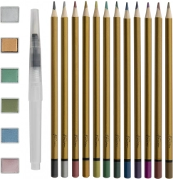 Découvrez des possibilités créatives avec ce set métallique aquarelle de 19 pièces dans une boîte métallique robuste. Il comprend 12 crayons, 6 aquarelles et un pinceau – idéal pour le dessin, la peinture et des accents métalliques spectaculaires.