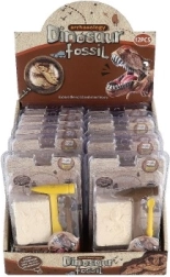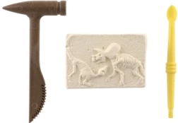 Le coffret contient un bloc avec l'empreinte d'un squelette de dinosaure et les outils nécessaires pour les fouilles - un marteau en plastique et un burin.