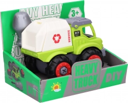 Profitez de ce jouet voiture à visser de 13 cm, livré avec un tournevis pour un assemblage facile. Roues libres et deux variantes, benne ou camion-poubelle, offriront des heures de jeu à votre enfant.