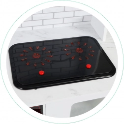 Le rétroéclairage LED imite des brûleurs incandescents et le bruit de frémissement renforce l’impression d’une vraie cuisson – idéal pour un jeu réaliste.