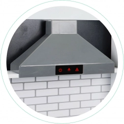 La partie supérieure de la cuisine est dotée d’une hotte et de crochets pratiques, pour garder les accessoires à portée de main et une cuisine bien ordonnée.
