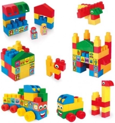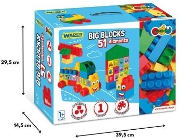 Le kit Grandes Briques est idéal pour les enfants qui aiment construire et développer leur créativité. Il comprend 51 briques colorées de différentes formes et tailles, qui peuvent être facilement assemblées. Il contient également deux feuilles d'autocollants avec des chiffres, des lettres, des personnages, des fruits, des légumes et des animaux.