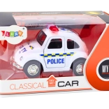 Voiture de police classique 1:38 à friction, avec lumières et sons, blanche