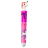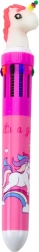 Stylo-bille multicolore ludique et pratique avec motif licorne, offrant 10 encres de couleurs différentes dans un seul outil.