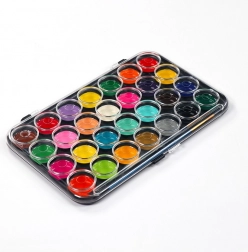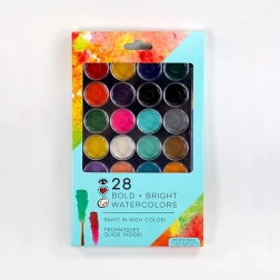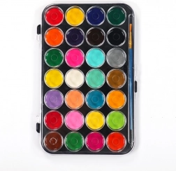 Découvrez d’innombrables possibilités de jeu avec les couleurs et créez vos propres œuvres originales. Ce coffret pratique et compact de 28 aquarelles aux teintes belles et vibrantes permet à chacun d’exprimer sa créativité. L’ensemble est rangé dans un étui en plastique qui protège les couleurs du dessèchement et en facilite l’usage au quotidien. Un pinceau et un guide succinct des techniques d’aquarelle sont inclus. Grâce à lui, chacun apprend à combiner les couleurs et à créer de nouvelles nuances. C’est un cadeau idéal pour les enfants, les amis et tous ceux qui aiment peindre.