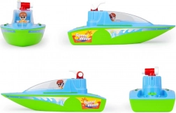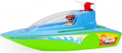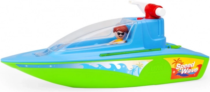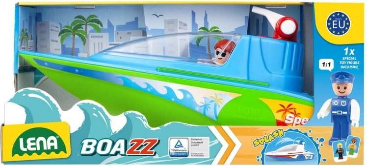 Le bateau de sport LENA « Speed Wave » transforme chaque bain en jeu d’action. La cabine ouvrante abrite deux places pour figurines, afin que l’équipage puisse partir en mission à tout moment et n’importe où. Grâce au canon à eau fonctionnel avec pompe mécanique, les enfants projettent facilement un jet d’eau – parfait pour des batailles aquatiques et l’entraînement de la précision.