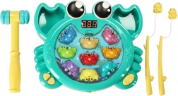 Le jouet propose deux options de divertissement – taper sur les crabes avec un marteau et pêcher avec une canne.