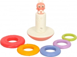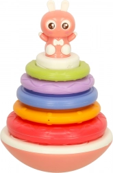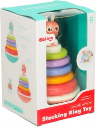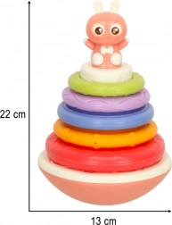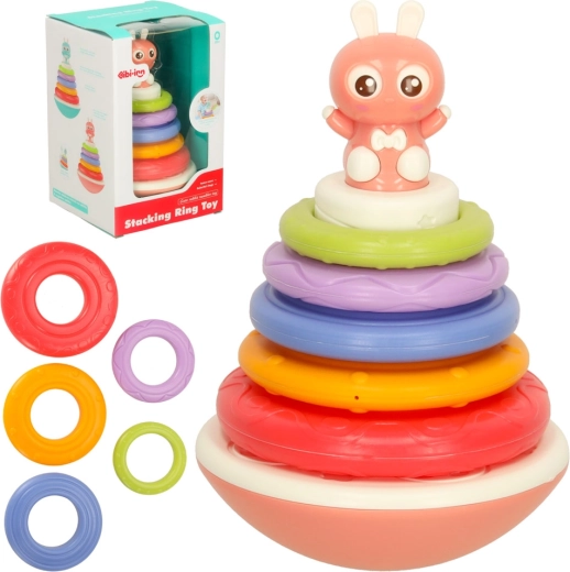 Le jouet à bascule Bibi-Inn est conçu pour stimuler la vue, l'ouïe et la motricité de votre enfant. Le lapin amusant sur le sommet de la base et la palette colorée d'anneaux garantissent des heures d'amusement lorsque l'enfant construit sa tour arc-en-ciel.