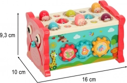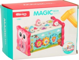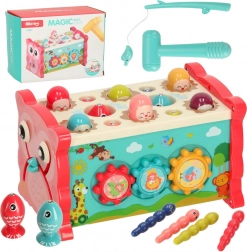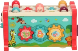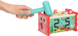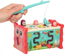Ce jouet éducatif interactif rose regroupe plusieurs activités dans un boîtier compact. Les enfants peuvent marteler les « taupes », pêcher des poissons et des vers colorés avec la canne fournie, faire tourner des engrenages, déplacer de petites voitures dans le labyrinthe et découvrir les bases de la lecture de l’heure. Les couleurs vives et les illustrations amicales stimulent les sens et favorisent le plaisir de jouer.