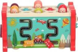 Un cadran rotatif pour apprendre les bases de l’heure, des roues dentées colorées pour stimuler la logique et un labyrinthe avec petites voitures pour développer la planification des mouvements.