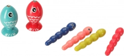 Attrapez des petits poissons et des vers colorés à l’aide de la canne – les enfants exercent leur patience, leur précision et la motricité fine des doigts.
