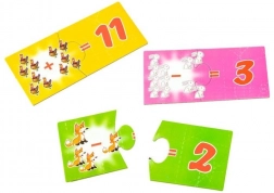 Ce coffret de puzzles amusant avec des animaux aide les enfants à acquérir les bases de l’addition et de la soustraction à l’aide d’illustrations et de nombres concrets. Les enfants relient les exercices aux résultats, renforçant la pensée logique, l’attention et la motricité fine – le tout naturellement et de manière ludique.