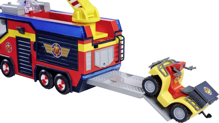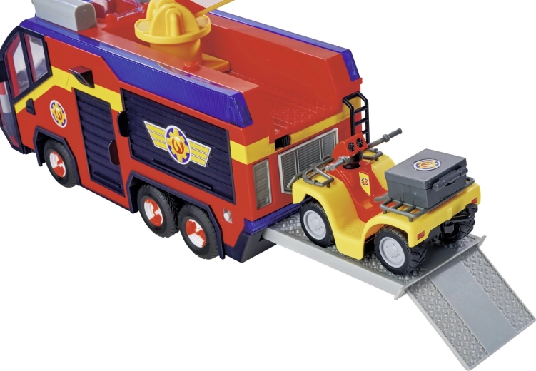 Le véhicule sous licence Sam le Pompier est un jouet de pompier compatible et extensible avec d’autres figurines, stations ou véhicules – par exemple, le quad de Sam le Pompier peut être garé sur la plateforme arrière coulissante intégrée à ce Jupiter.