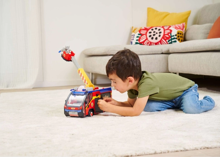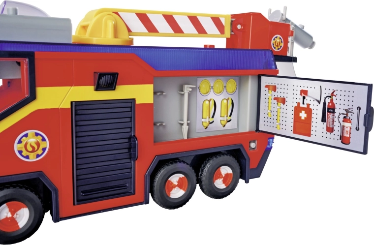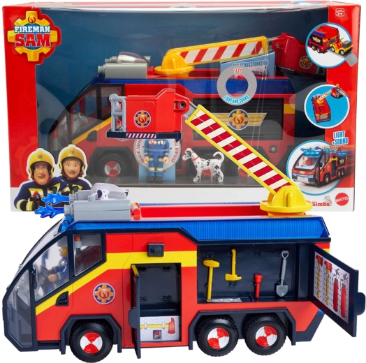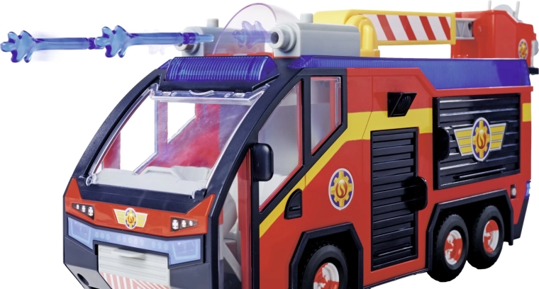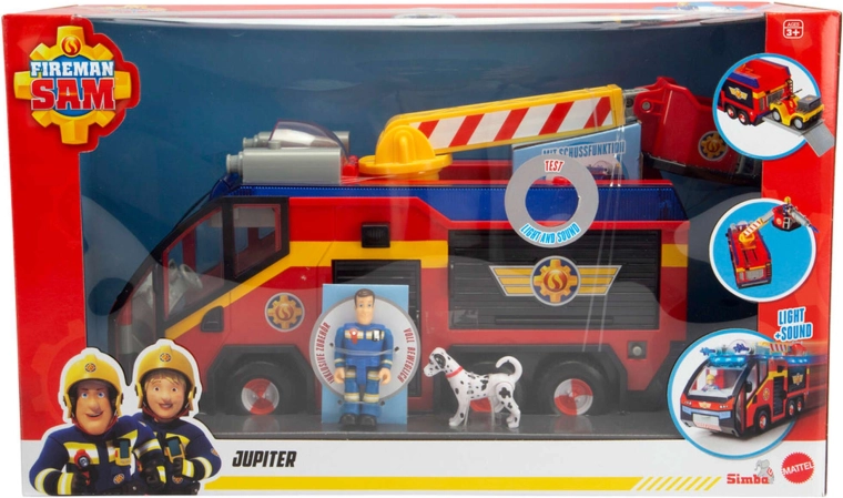 - JOUET SOUS LICENCE : Le véhicule le plus célèbre de Sam le Pompier, Jupiter, dans une nouvelle version qui reflète fidèlement le véhicule de la saison 14 de la série. Jupiter dispose d’une échelle de pompier rotative, extensible et orientable, avec des projectiles d’eau en plastique.