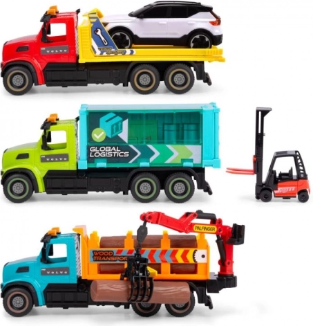 La gamme comprend trois versions attrayantes : transporteur de bois avec grappin mobile (licence PALFINGER), transporteur de SUV VOLVO et ensemble avec remorque et chariot élévateur LINDE. Les produits sont expédiés aléatoirement (assortiment), prix pour 1 pièce.